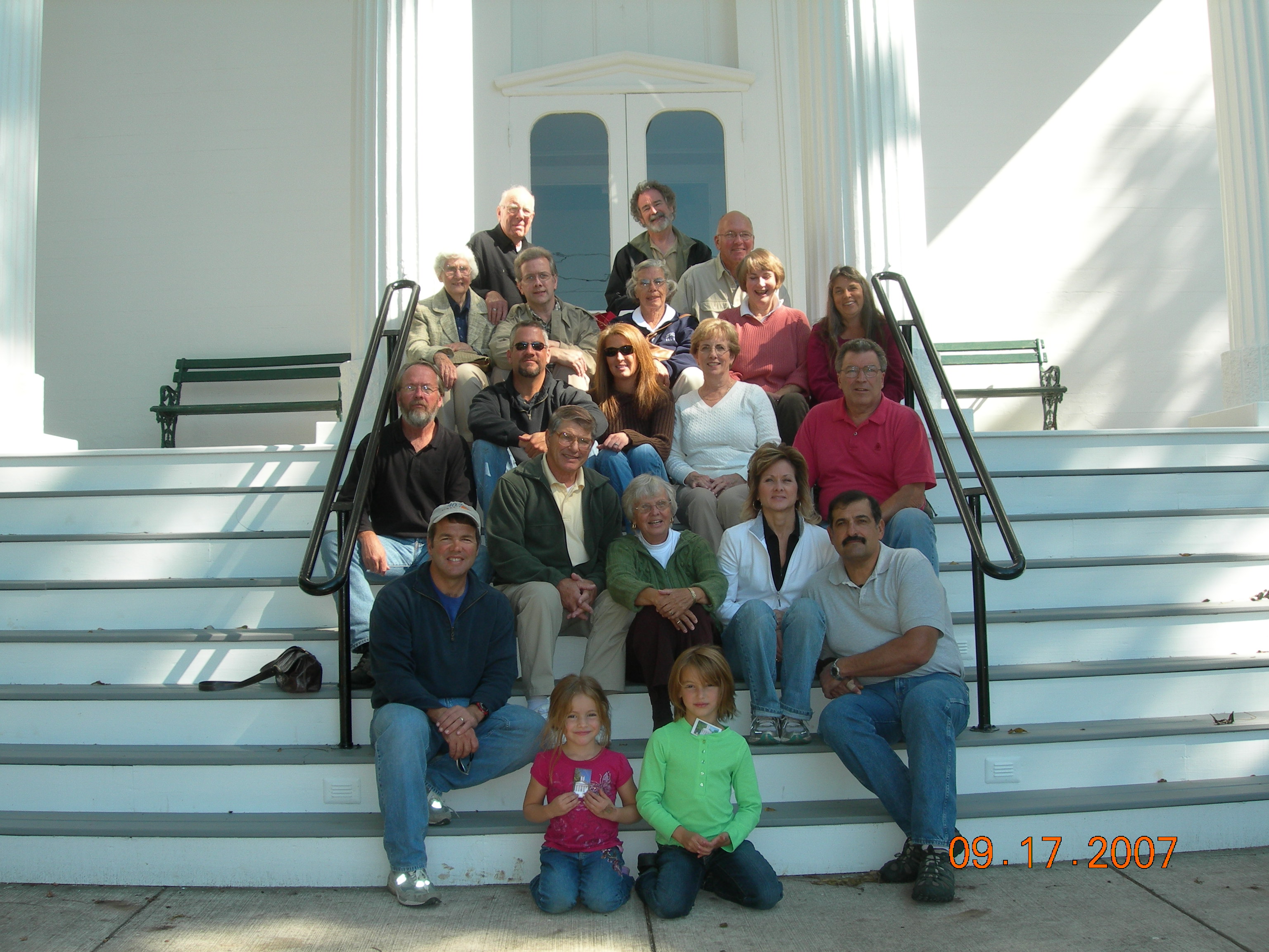 Front Row (l-r): Diane Marsden; Lew Ann Giles; Ginny and David Davis; Robert Doremus; Izzie Chandler w/Evelyn Chandler; Russ Chandler w/Leah Chandler; Sally Otis. Second Row: Alan Giles; Paul Wyzykowski; Carol Gorecki; Sharon Olsen; Maureen and Jerry Wetherby; Gretchen and Peter Philipp; Gail Romig; Judie Wetherby. Back Row: Lloyd Marsden; Jesse Otis; Ric Olsen; Dillwyn Otis; Jay Wetherby; Janet and Greg Otis
