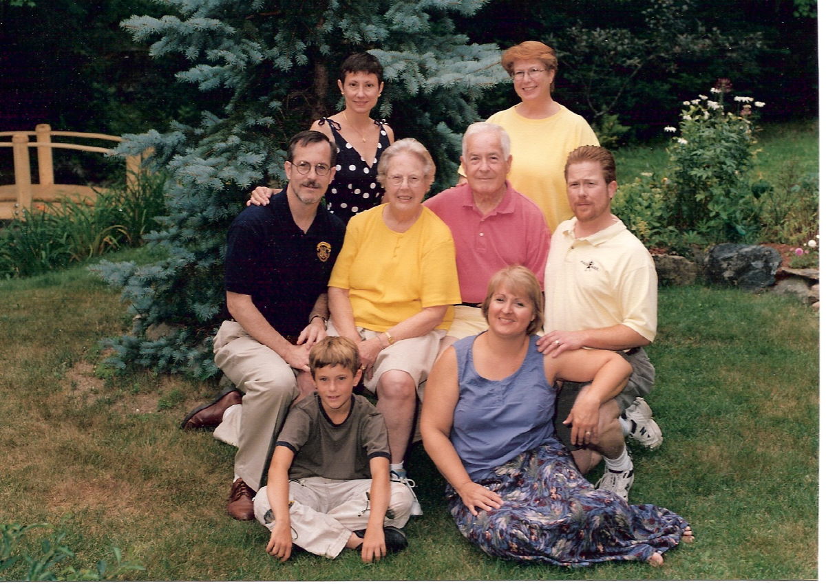 The Larkins in 2001 at Loon Cove Front Row: David Anthony (son of Amy & Steve), Ani (wife of David Alan); Second row: Stephen Signor Larkin (Son of Barbara and Bill), Barbara Davis Larkin, William Charles (Bill) Larkin, David Alan Larkin; Top Row: Amy D'Adetta (wife of Steve), Judith Louise Larkin.