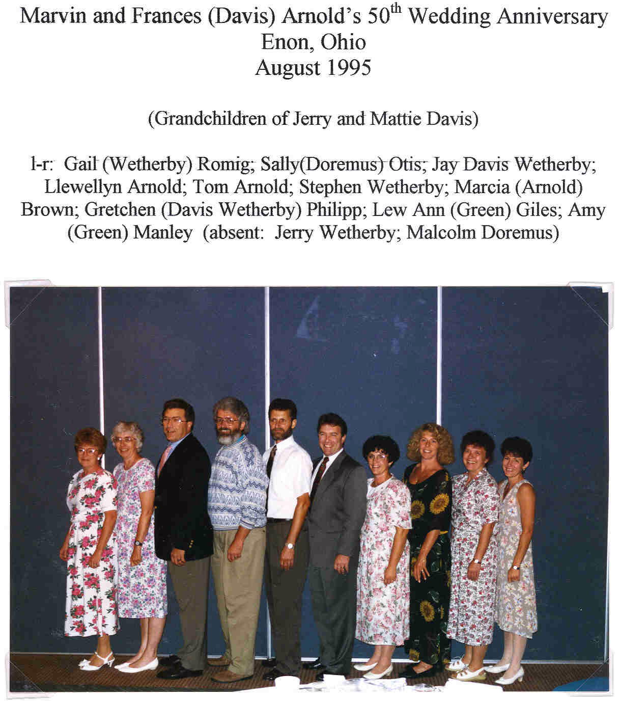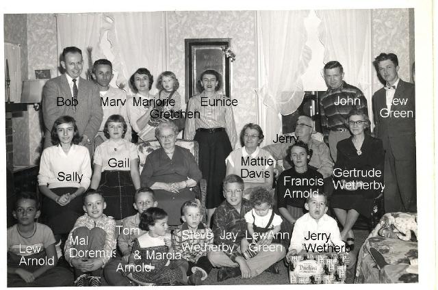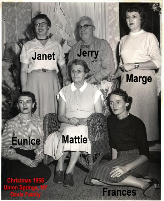 Janet Davis Doremus Frances Davis Arnold Marjorie Davis Wetherby Eunice Ann Davis Green Left to right in picture from 1940: Frances, Eunice, Janet, and Margorie