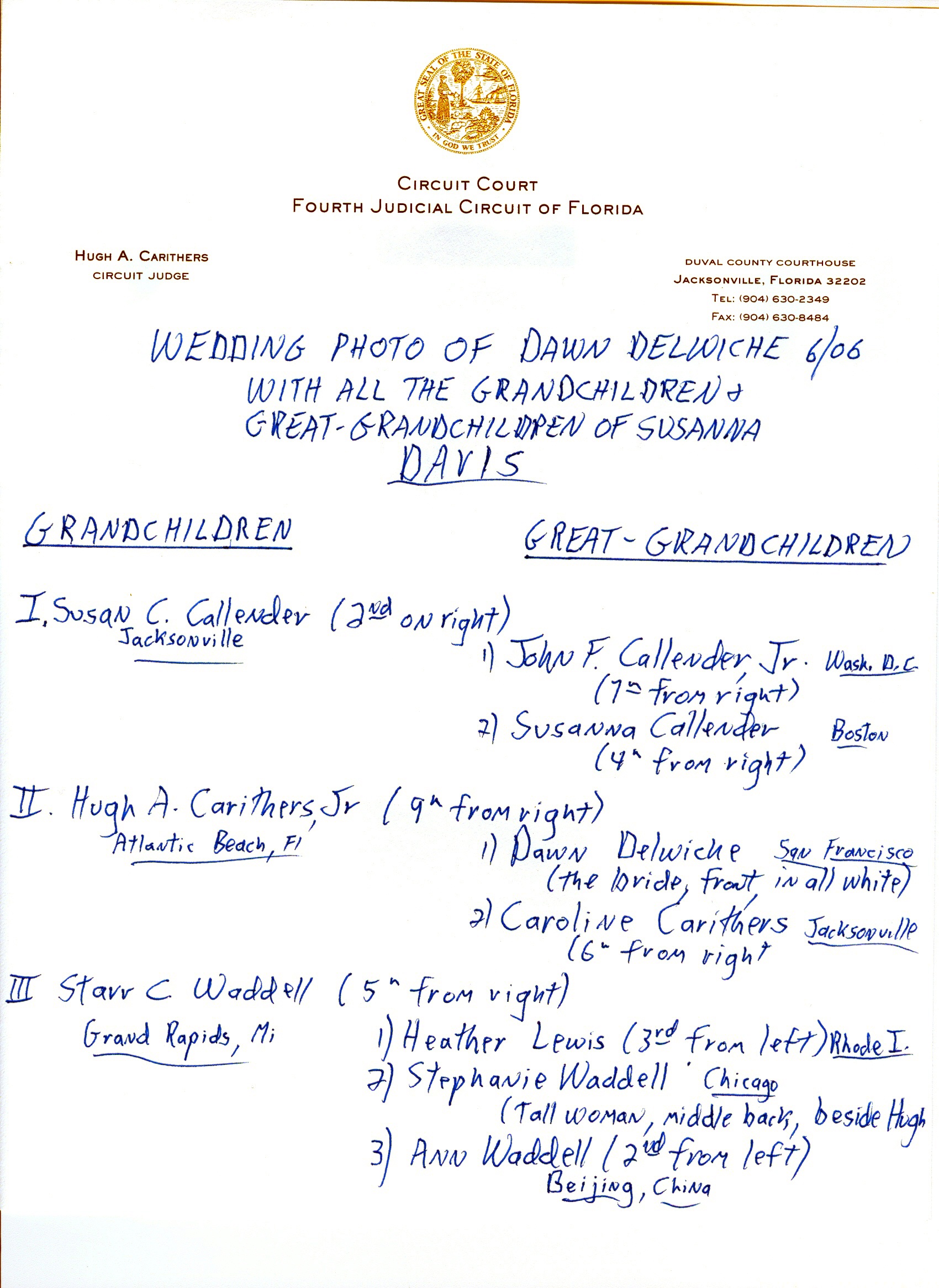 Wedding of Dawn Delwiche in June 2006. Includes all grandchildren and great grandchildren of Susanna Davis